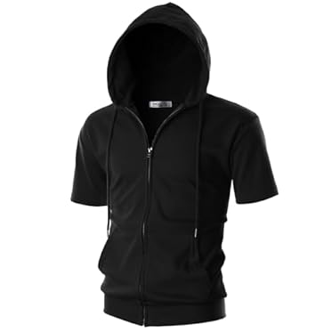 Ohoo Mens Slim Fit Zip up Hoodie Short Sleeve Thin Jacket Full Zip Sweatshirt with Kanga Pocket