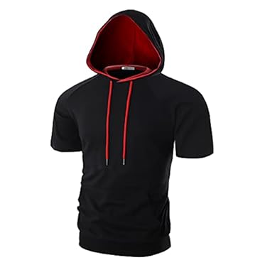 Ohoo Men’s Short Sleeve Hoodie Pullover Slim Fit Lightweight Summer Hooded Sweatshirt
