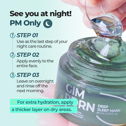 Wake up to skin that feels calm, hydrated, and softly refreshed. The GIM PDRN Deep Sleep Mask is formulated with low molecular weight PDRN (derived from seaweed), along with a blend of 8 types of hyaluronic acid and 8 peptides. While you sleep, it helps support the skin’s natural moisture balance and elasticity. Its lightweight, water-balm texture melts into the skin without stickiness, creating a breathable layer that feels comfortable through the night. By morning, skin appears smoother, more supple, and well-rested.