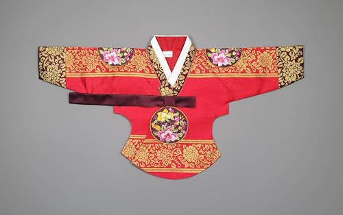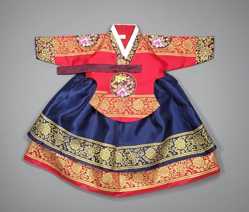 Korean hanbok Baby Girl 1st Birthday Party Gold Print 1 Age 12 months Princess Design Vivid Color EWAG011, Red
