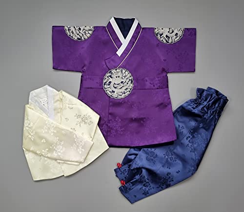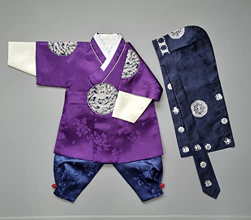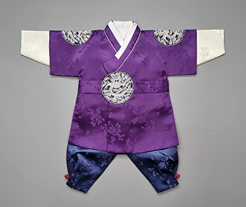 Korean Traditional Clothing Hanbok Boy Baby 100th Days First Birthday Dol Party Celebrations 1-8 Ages Purple BDBH02
