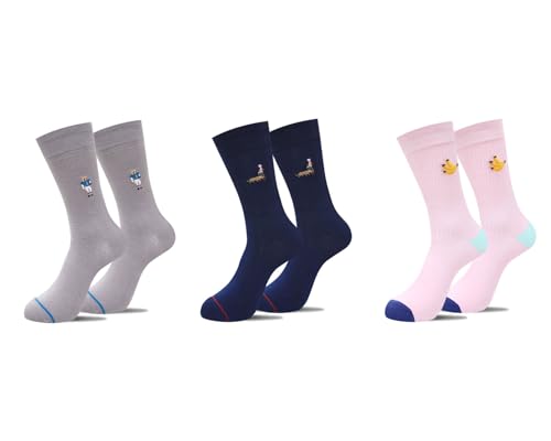 ME,HI Men’s High Qulity Fashion Pattern Casual Socks 3-Pairs Set, Machine washable, Size 7~10 with Gift Case Made in KOREA