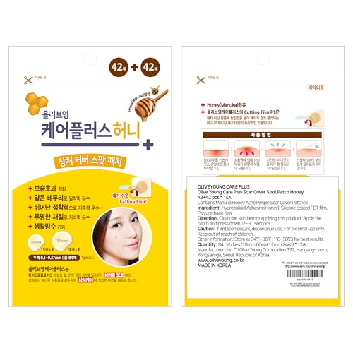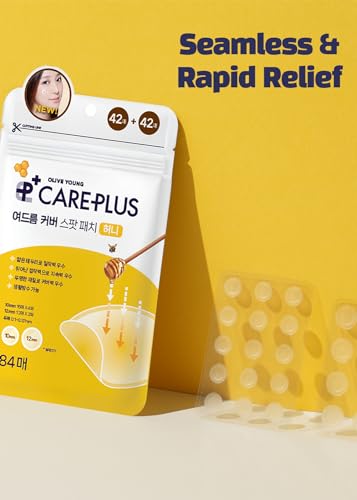 OLIVE YOUNG Care Plus Spot Patch | Hydrocolloid Acne Korean Spot Patch to Cover Zits, Pimples and Blemishes, for Troubled Skin and Face (Manuka Honey, 84 Count (Pack of 1))