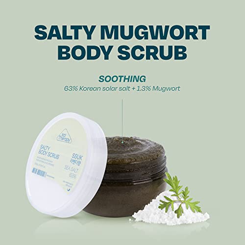 salTherapy Mugwort Salt Body Scrub – Korean Mineral Sea Salt Body Scrub For Sensitive Skin | Gentle Salt Scrub For Body | Calming Body Exfoliator For Women and Men(10.58oz)