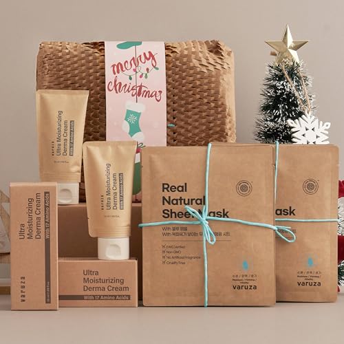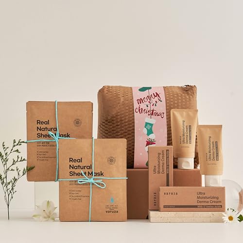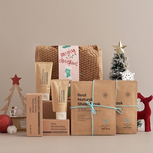 varuza EWG Verified Gift Box Set – Korean Skin Care for Deep Moisturizing, Soothing Skincare with Sheet Masks, Face Cream – Unscented, Oil Free, Vegan
